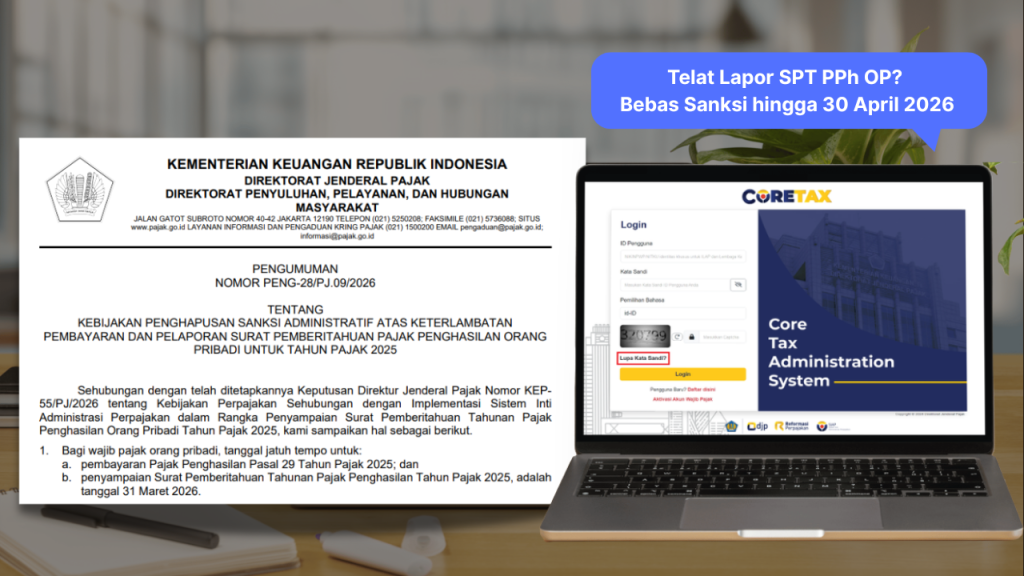 Intermask, Jakarta – Direktorat Jenderal Pajak (DJP) memberikan kebijakan penghapusan sanksi administratif bagi Wajib Pajak Orang Pribadi yang menyampaikan Surat Pemberitahuan (SPT) Tahunan Pajak Penghasilan Tahun Pajak 2025 melampaui batas waktu, namun tidak melewati tanggal 30 April 2026. Kebijakan ini merupakan tindak lanjut atas ditetapkannya Keputusan Direktur Jenderal Pajak Nomor KEP-55/PJ/2026 tentang Kebijakan Perpajakan Sehubungan dengan Implementasi Sistem Inti Administrasi Perpajakan dalam Rangka Penyampaian Surat Pemberitahuan Tahunan Pajak Penghasilan Orang Pribadi Tahun Pajak 2025.