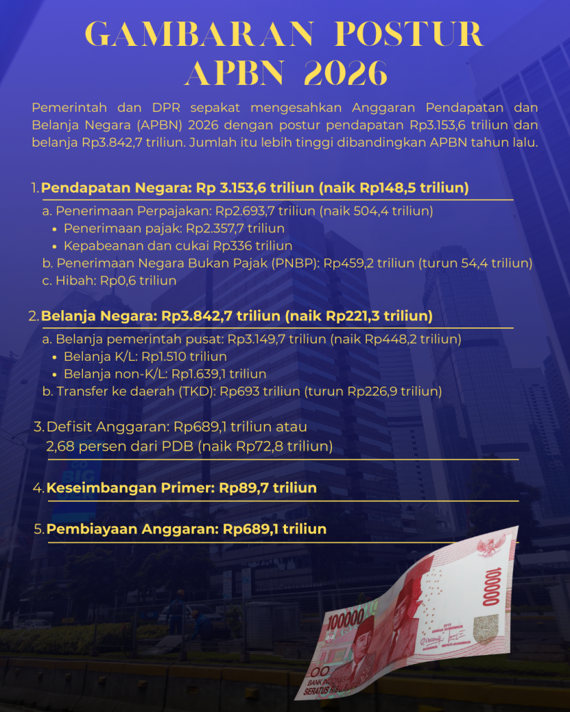 DPR telah mengesahkan RUU APBN 2026 menjadi Undang-undang dalam Rapat Paripurna DPR RI pada 23 September 2025.
